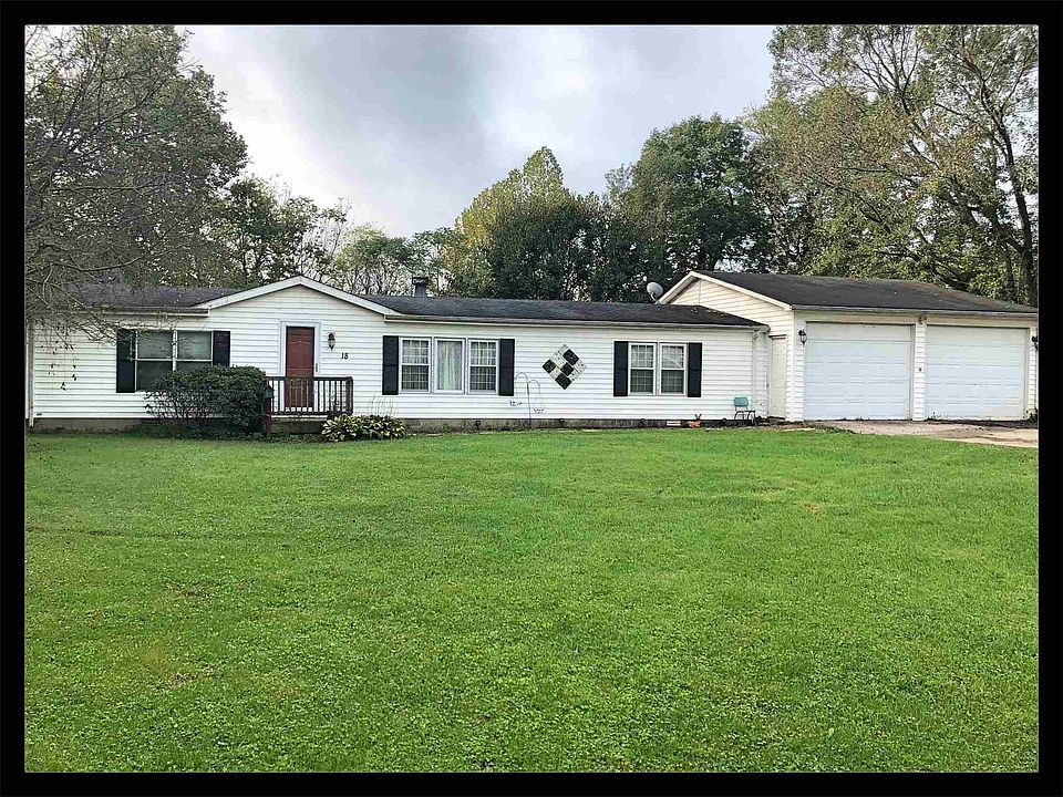 Come see this 1456 sqft house located on 3.5 acres, conveniently minutes away from down town Bedford and BNL High school. Large open living room great for entertaining, with fireplace for supplemental heating. Property includes wooded areas, a field that use to home horses, and over sized two car garage with 8ft tall garage doors.