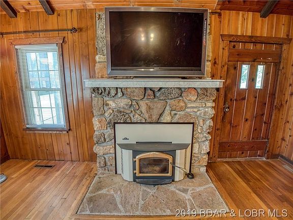 Charming Cabin situated on a double lot in the heart of Lake Ozark, with city water, city sewer WITH many upgrades and improvements. Enjoy the year round Lakeview from the main level deck and enjoy the warmth of the cozy fireplace insert for those cold winter days in the living room surrounded by knotty pine walls and original wood floors. Many of the doors have original hardware as well. The kitchen just received brand new refrigerator, dishwasher, garbage disposal, stove, sink, faucet and new flooring! Bathroom has been renovated with custom vanity, vessel sink, stool and marble flooring. Lower level is considered the 2nd bedroom which also leads out to the attached garage and laundry area. Great full time or seasonal home with nearby marina, shopping and tons of restaurants. Plenty of room to add on or build a huge garage without HOA restrictions. See today & own this one of a kind little piece of history left in the heart of Lake Ozark!