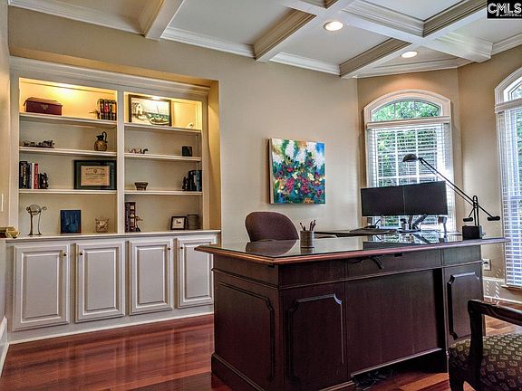 - Ceiling Fan(s), Wet Bar, Recessed Lighting, Vaulted Ceiling(s), Workshop, Built-Ins, Bookcases, Wired for Sound, Office, Ceiling Fan, Exercise Room, Entertainment Center, Floors-Hardwood, Molding, Bonus-Finished, Bookcase