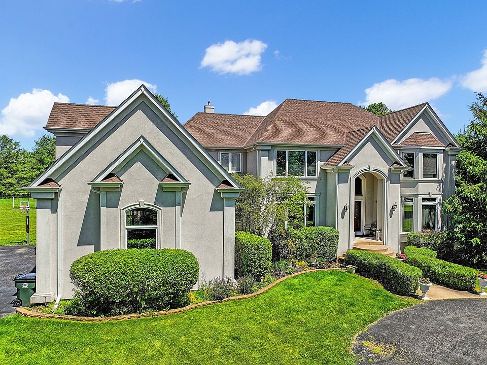 Welcome to your dream home in the highly sought-after Barrington Hills, Illinois. This exquisite 7,500+ sq. ft. residence seamlessly combines transitional luxury with timeless elegance. Upon entering through the impressive two-story foyer, you are greeted by a grand open floor plan that overlooks a meticulously landscaped 5-acre estate. The inviting layout connects the living and kitchen areas, perfect for both daily living and entertaining. Soaring ceilings, expansive windows, and skylights flood the space with natural light. The chef's kitchen features top-of-the-line appliances, including a large refrigerator, double oven, two-drawer dishwasher, and an oversized island. Adjacent to the kitchen is a mudroom with a utility sink and laundry hookup, offering convenience on the main level. The first-floor master suite is a retreat unto itself, featuring a spa-like bath with a double vanity, large Jacuzzi tub, and a walk-in shower. Ascend the staircase to discover four spacious bedrooms, including a "Jack and Jill" suite and a full bath ensuite. The upper level also houses a well-equipped laundry room with sink, washer, dryer, with ample counter space and storage. The fully finished walk-out basement is an entertainer's paradise, complete with a full kitchen, expansive bar, full bath, pool changing room, and more. Step outside to your private resort-like backyard, where a beautifully landscaped large yard sets the stage for outdoor gatherings by the sparkling in-ground swimming pool, hot tub, fire pit, and new deck. This magnificent 5-bedroom, 4.1-bathroom estate in Barrington Hills truly has it all.
