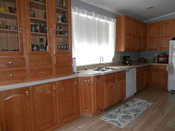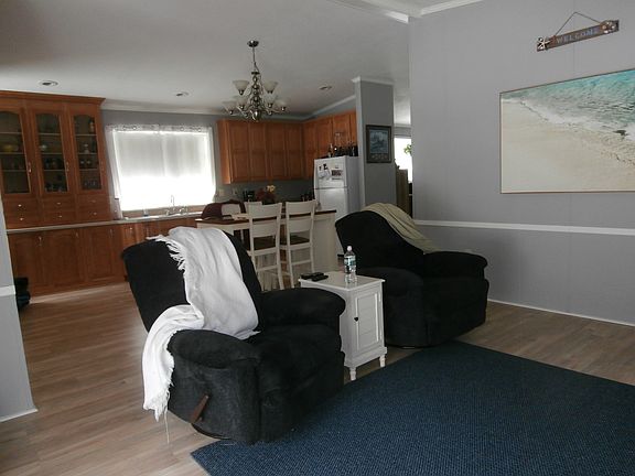 2006 Pine Grove 28x56 3 BD 2 BA Newly renovated home is beautiful. New laminate flooring throughout will make this home a breeze to keep clean. Walk into the home through sliders into a family room area featuring an oak mantel gas fireplace. Move to the large open kitchen with plenty of oak cabinets and a stone feature wall housing the glass top range. Take a few steps up to living room that has plenty of room for that big screen TV features a Rinnai propane direct vent heater. The master has two large closets and an attached master bath with a whirlpool tub and walk in shower wonderful space to relax in. The other two bedrooms are close by the main bathroom and laundry room, both have large closets for storage. Two 8x10 sheds round out this wonderful home.