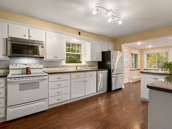 Welcome to this charming one-level home that is only minutes from downtown! Upon entering, you will be wow'd by beautifully renovated eat-in-kitchen that boasts gleaming engineered hardwoods, new windows, and slider to the deck that offers an abundance of natural light and a view to your private level back yard. The kitchen leads right into the cozy living room where you will find hardwood floors and built-in shelving. All three bedrooms feature hardwood floors and new windows! The walk-out unfinished basement can easily be finished and includes a hook up for a wood burning or pellet stove! An attached one-car garage offers ample space!Updates include: kitchen expansion with engineered hardwood flooring (2011) a new heating system (2013), all new windows (2011), new roof (2006), re-stained cedar shakes (2011), painted trim (2020), and so much more! See attached feature sheet. Close to the Mass Turnpike and 290!