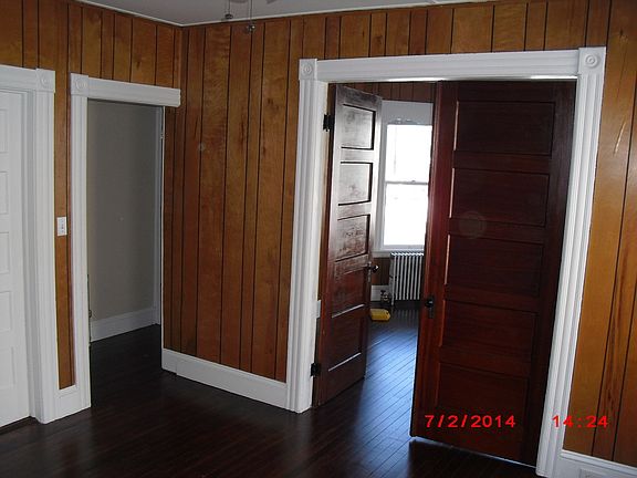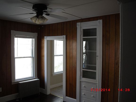 Large 1st floor apartment, 2 bedrooms, full bath and laundry located in quiet neighborhood. Includes porch, private back yard, hardwood floors, washer and dryer facilities in apartment, wide baseboard trim and molding, blinds on all windows, ceiling fans, front and rear access, trash, water and sewer services, . Street parking, no pets, none smoking property. Credit & background check required, lease and security deposit. Tenant pays own utilities, oil heat, electric, internet and cable.