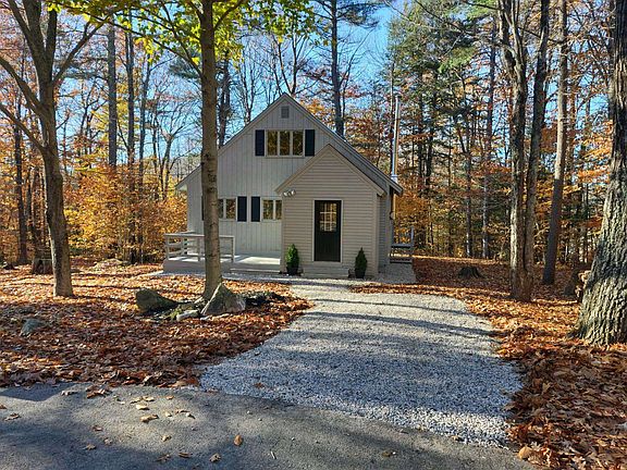 Newly renovated Chalet in the low tax town of Tuftonboro! Private location at the end of a cul-de-sac on a .46 acre lot. The mudroom tiled entry is welcoming & convenient for boots, coats & more. NEW primary heat source in living room. When entering the very large living room, you'll be amazed at how you can place your choice of furnishings & have plenty of room for guests & family time. Also, chimney for wood or pellet stove in place. The bright kitchen is eye catching with the multiple cabinets & new stainless appliances & counters. New laminate flooring throughout the home. 1st floor bedroom & full bath, plus laundry hook-ups. 2nd level offers 2 additional spacious bedrooms & bath with shower. Front 8 x 14 deck for grilling & relaxation. The outstanding location is part of the Hidden Valley Association. Purchase of the home includes usage of two beaches, tennis court, dock space at the Marina & lakeside canoe & kayak storage. Lower Beech Pond is a 160 acre pristine body of water located in the Lakes Region for all season activities. Wolfeboro is just a few miles away for multiple dining options, shops & more. There is a sizeable shed on the property for summer & winter toys. The property is ready for immediate occupancy & will make a perfect primary or vacation home.
