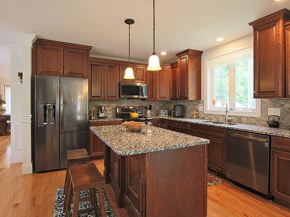 This Custom home is less than 4.5 years old, and due to relocation, you could be all moved in before the school year starts! Lots of space for entertaining in the open concept Kitchen, Dining, Family Room areas. Well-appointed Kitchen with stainless steel appliances, Granite countertops, and pantry closet. Hardwood flooring throughout the first floor and upstairs hallway, tile flooring in the Bathrooms and Laundry. Main Bedroom suite with Bathroom with double sink vanity. Great mechanicals and utilities high efficiency forced hot air propane heating system with Central A/C and town water and sewer. Many added features, Some of the upgrades include disposal, tile kitchen backsplash, Garage opener upgrade, finish interior of garage. This home will not disappoint! Hurry to see this one. Enjoy the serenity of the private deck and back yard with storage shed. Easy Commuter access too!