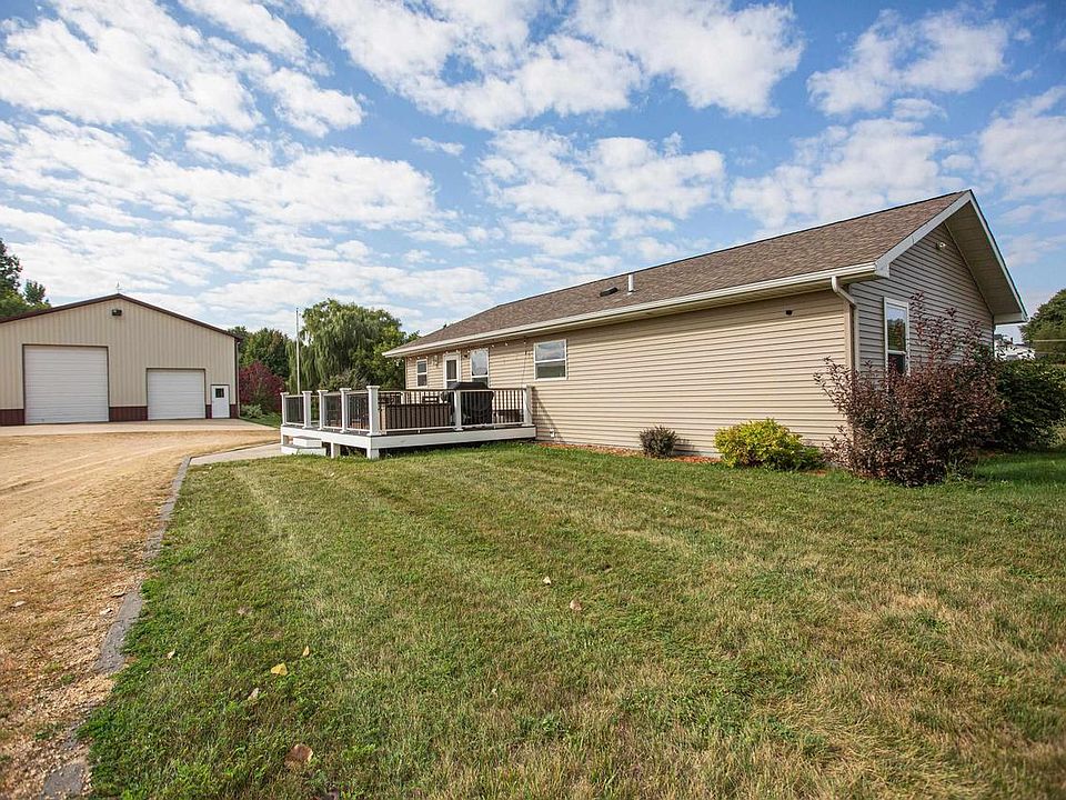 This 3 bedroom, 2 bath home is perfectly located on the north edge of town. Everything is conveniently located on the main level, including laundry. The master bedroom has a pass through full bath and walk-in closet. The living room, dining and kitchen are open concept with a deck off the dining which makes for great entertaining space. The LL is completely ready for your finishing touches and has a third bath plumbed. The property sits on 2.78 acres. The shining star of the property is the 40x56 well insulated shop with efficient LP Goodman furnace, 3 overhead doors (14', 10', 8'), floor drains, 16' ceiling, water, a 7x12 office with wall AC & heater, half bath, heavy duty loft area and work benches and industrial air compressor system. Take advantage of all this property has to offer.