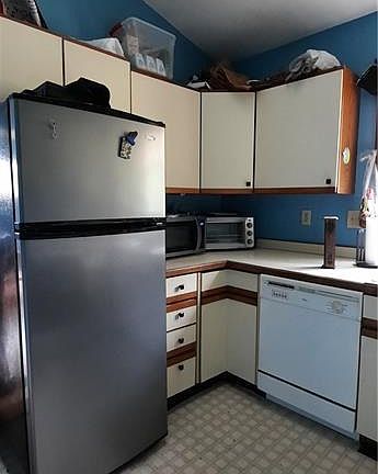Great location, close to town. This is an end unit condo, one of only 15. Assigned parking, with guest parking available. The association has started the siding project, and these condos have a new, fresh look. Siding will continue, with no special assessments currently planned. Just right size for one or two people, with vaulted ceiling living room, a galley style kitchen brightened by a skylight, and the bedroom in the back. The bedroom has a slider that leads to a private patio. Full bath with laundry finishes the space. This condo association is not FHA approved, so cash or conventional financing will be easiest. Currently tenant occupied, but ready for occupancy mid September (possibly sooner)