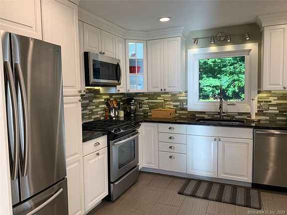 This lovely split level has too many updates to list Beautiful remodeled kitchen with granite countertops, tile backsplash, stainless steel appliances and a breakfast bar. The combination fireplaced living room/dining room has gorgeous hardwood floors, a wood burning fireplace and enormous windows that offer a tremendous amount of natural light. There is a first floor family room and a beautiful sun room overlooking the pretty backyard inclusive of gorgeous flowers, plants and shrubs. The three bedrooms all have beautiful hardwood floors. The two full bathrooms have been completely renovated with chic tile. The lower level is partially finished and also has a woodburning fireplace. The town has the garage listed as a two car garage but the second bay is small and would only fit a small vehicle. Norfeldt Elementary is less then a five minute walk down the street and Hall High is walking distance as well.