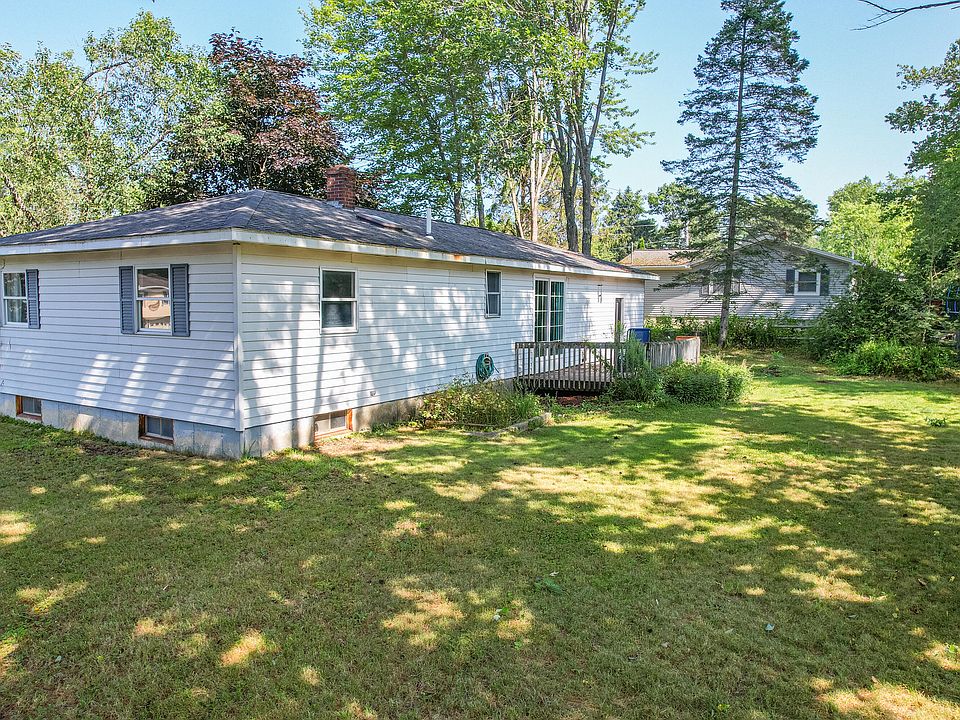 Picture-perfect and move-in ready, this charming 3-bedroom, 1-bath ranch in Lisbon offers single-level living on a beautifully elevated corner lot in a well-established neighborhood. With 960 sq. ft. of thoughtfully designed space, the home features an open floor plan connecting the kitchen, dining, and living areas—ideal for both everyday living and entertaining. The kitchen shines with warm wood cabinetry, white countertops, subway tile backsplash, stainless steel appliances, and a new sliding glass door. Recently painted walls, ceilings, and trim pair with new LVP flooring and carpeting to create a fresh, inviting atmosphere throughout. The bold red-accented living room adds cozy character, while a bright office space with large windows provides the perfect work-from-home setup. The bathroom features a clean, contemporary design with artistic flair and skylight. The full basement offers ample potential for additional square footage, storage, or creative use, and practical upgrades include a newer furnace, new electrical panel, new LED lighting, new exterior doors, and newer architectural shingles. An attached garage, newer door, and opener offers convenient parking and storage. Surrounded by mature trees, the generously sized yard invites outdoor enjoyment, gardening, or simply relaxing in nature. Located just minutes from I-295 in Topsham or I-95 in Lewiston, this home combines comfort, updates, and convenience in one delightful package.