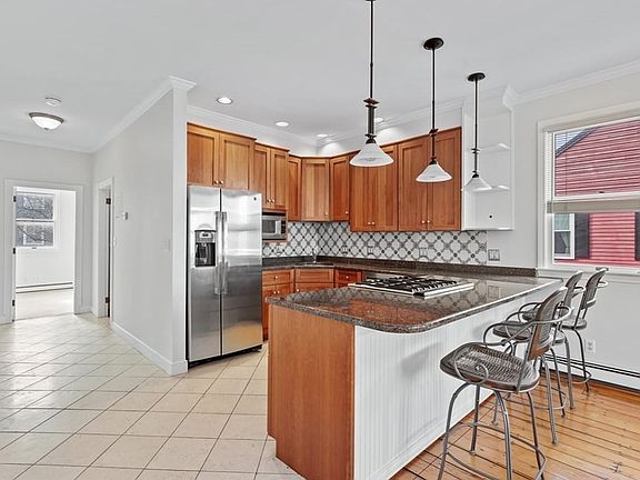 Prime Location just off Monument Square! Beautiful Style & Impeccable Design! This Outstanding condominium home offers 2 Bedrooms, 1 Full Bath, and a lovely deck! Bonus!-the association has a tandem (2 car driveway) These are utilized on a first come, first serve basis! Amazing Sunshine from Windows that are Everywhere! Great Ceiling Height! Check off everything on your wish list starting with its Flawless floor-plan! Sparkling Gourmet Designer Kitchen! Top of the line Stainless Steel Appliances and Granite Counter tops and enormous breakfast bar! Superior Open Concept Living Space offers a very Flexible Layout enhanced by the large bay window alcoves in both the diningroom and livingroom! Perfect for intimate dining or large scale celebrations! Easy access to deck! Embracing Primary Bedroom with superior closet space! Big Guest Bedroom/Den with a designer closet for maximum storage! Wonderfully updated bath! Gleaming Hardwood Floors throughout, and Laundry in unit! Extra Storage too!