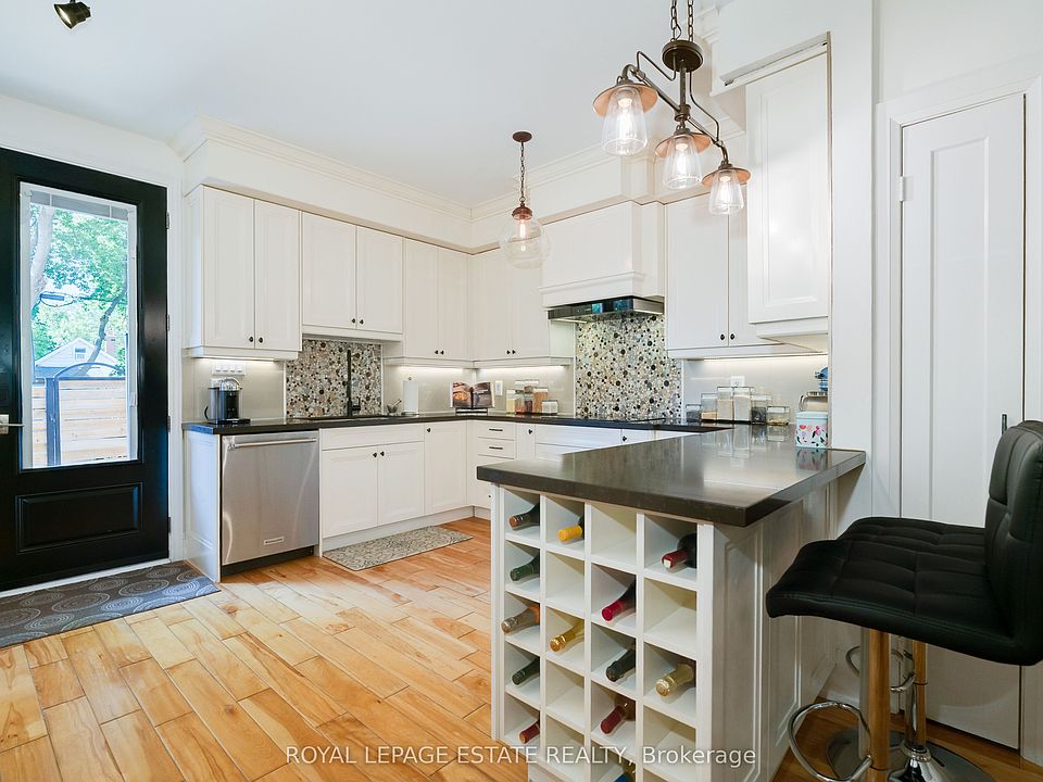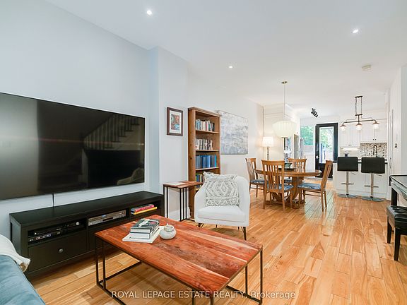 Designer 3-storey townhouse that feels just like a semi! This newer-build offers 3 very spacious bedrooms and 2.5 baths, including a stunning 3rd-floor primary retreat with vaulted ceilings, a walk-in closet, an ensuite, and a private sun deck. Open concept living on the main floor, high ceilings throughout and plenty of living space including the finished basement with separate walk-out. Storage abounds on every floor and convenient laundry on the 2nd floor! Rarely found 2 car parking off wide lane! Bright, stylish, and thoughtfully designed, this home checks all the boxes. Great schools, dog parks, kids parks, markets, restaurants, cafes, and easy access to Go transit, TTC and highways, AND let your kids play on the street with no through way traffic, it's just your neighbours! Parking pad is being repaved!
