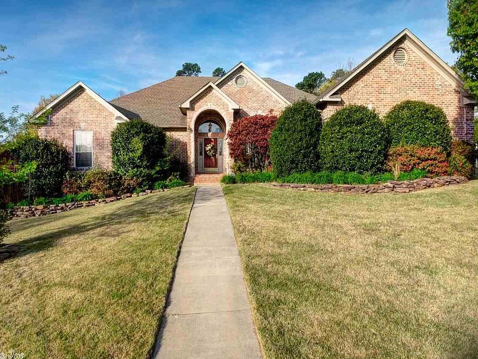 Beautiful one level with a spacious converted 4th bedroom that can be used as a study, library, sitting room or music room. OR reconverted to a bdrm. Updated kitchen w/double oven (gas top & electric ovens) and opens to a large breakfast/morning room w/double fireplace. Long formal dining rm! Large master bdrm, One bay in 3 car garage is finished as an office w/some storage between rm & gar door. Lots of flowering shrubs and flowers in large backyard, walk-in storage underneath. Side loading garage.