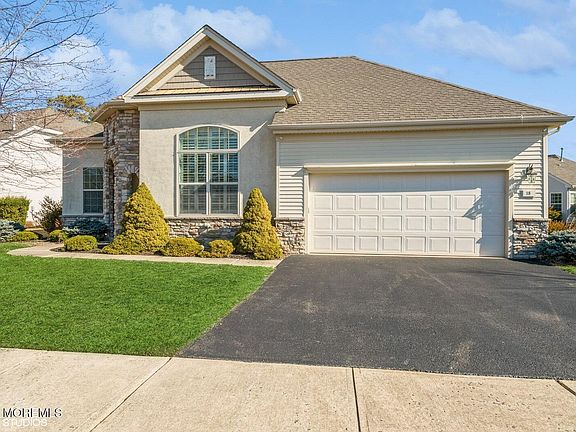 Step through a grand stone entry into this large 2 bed, 2.5 bath, 2 car garage Montauk model, in prestigious Heritage Point. The gourmet kitchen features granite countertops, a large island, and a bar area - ideal for hosting. A double-sided gas fireplace adds elegance and warmth to the living and dining spaces, while an office/den with french doors and a striking palladium window offers a peaceful retreat. The primary suite is complete with a tray ceiling, double walk-in closets, and a bath featuring a tub, separate shower, and a private toilet room. The second bedroom also has its own full bath. The house is also wired for multi-camera security system. Enjoy low maintenance fees, resort-like amenities, all just a short drive from the beaches, shopping and AC!
