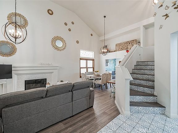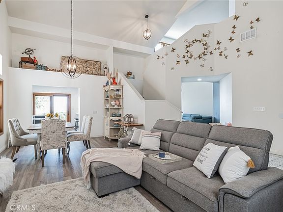 *******PRICE REDUCTION*******Gorgeous Mediterranean-style home with panoramic views, located in the prestigious Tuscany Hills area of Lake Elsinore. Home features a primary suite in the first floor, private bathroom with double sinks, granite counter tops, wet room with shower, Japanese soaking tub, sauna, walk-in closet & sliding door exit to the outdoor fountain and courtyard. The spacious living room, family room & dining room complete an open plan with vaulted ceilings which allow plenty of natural light all over the house, gas fireplace in the living room, along with a bay window bench. A beautifully tiled staircase takes you to the second level where the three other bedrooms are located , along with a dry bar/coffee station with quartz countertops, backsplash, linen cabinet & full bathroom. The kitchen has been beautifully upgraded featuring a '19 Samsung stove, quartz countertops, from top to ceiling, fireclay 33 inch single bowl, apron farmhouse sink with bottom grid, pull down industrial sprayer & spot sink faucet; kitchen has an adjacent breakfast area with Van Gogh motif on the north wall, next to the bar/coffee station & wine fridge. Both he kitchen & family room have access through sliding doors to the tiled back patio complete with pergola, rolling shades mister system & market lights perfect for dining al fresco with nice views of the snow covered mountains in the winter & sunset all year round. Home has curb appeal with a tiled patio in the front yard with pergola, rolling shades & market lights leading to the entry door with stained glass windows. The three car garage has plenty of built in/attic storage & direct access to the house through the laundry room & the yard through a side door. Home has been re-piped with PEX plumbing; newer water resistant flooring has been installed all over the house, which includes ceramic tile in the entry, kitchen & bathrooms; ceiling fans in all the bedrooms. Pella wood frame double pane windows with integrated blinds & shades tucked between the glass panes make the home energy efficient with the help of the new HVAC, new water heater & sprinkler system for a low maintenance back yard. Community features a pool , hot tub, event space, gym, tot lot & basketball/tennis courts. Home located just a few minutes drive from the 15 Freeway, shopping, dining & beautiful Lake Elsinore!