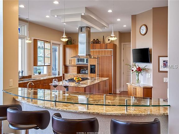 This home has it all! Incredible long marsh views from almost every room in the home thanks to highly acclaimed architect Kermit Huggins. Multiple decks across the back of home overlooking the pool & marsh. 3 guest suites (2 w/ private decks) upstairs w/ one currently being used as an exercise room. Your guests will never want to leave! Media room, dining room, eat-in kitchen, wine cellar, 4 car drive through garage, 2 climate controlled storage rooms, elevator, 2 new tankless water heaters, new 4 ton HVAC system, & much more. Tremendous value as very few vacant marsh homesites in Belfair on which to build. This one won't last long!
