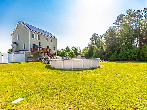 Set back from the road on 1.4 acres is this stately 3 bedroom/2.5 bath Colonial with 2 car garage & above ground pool. Welcoming front porch allows you to overlook the spacious expansive front yard & enter the foyer which leads you to the cozy living room featuring a gas fireplace that easily flows into the large kitchen/dining area boasting granite countertops, stainless appliances, breakfast bar & slider to the deck which overlooks the above ground pool, patio, fire pit area, shed & large fenced in yard. Home office & renovated 1st floor half bath with laundry. Upstairs you will find the main bedroom with walk-in closet & renovated full bath with granite countertops & tile floor. 2 additional bedrooms & renovated hall bath. Partially finished walkout lower level with access to the 2 car garage. Central air, propane gas heat, irrigation & easy care vinyl siding complete this special offering. Solar panels will be assumed by the buyers. Buyers/buyers agent to verify all information contained herein.