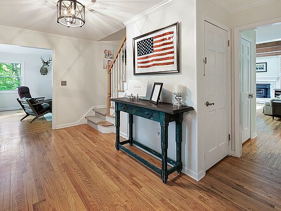 Privately set at end of long, tree-lined drive, this Classic, Updated (2 ) Colonial presents (2692 sq ft) 4 bedrooms, 2.5 baths, partial (420 Sq ft) fin low lvl regally set on 1.8 lvl wooded la ndscaped acs w brick paver patio and majestic mountain views. Highlights of columned, cover portico entry accented in stone, 1970's home incl hardwood flrs on both lvls, cedar closets, updated gourmet kitch and breakfast area w white cherry cabs, granite counters, s s applncs, beam cath-ceiling fam rm w firepl wood stove, living rm w crown molding, dining rm w crown chair rail moldings, office and tumble marble powder rm. Private master bedrm suite w lux bath and 3 bedrms share spacious hall bath. 2-car garage w 2019 insulated doors, newer energy eff windows, design and mechanical upgrades, 2019 roof and 2009 septic system.