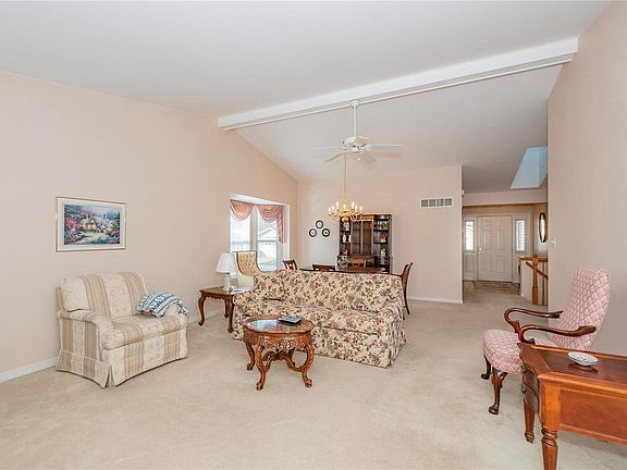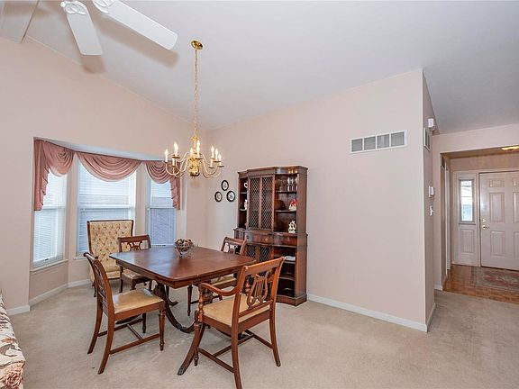Spacious & lovely Villa in Southern Oaks has 1,521 SF on the main floor with three total bedrooms & three full bathrooms. The entry foyer has a Skylight. Entertain in the vaulted living room w/gas fireplace. The dining room has a bay window & chandelier. Enjoy the eat-in kitchen with an electric stove, dishwasher, SS Microwave, dual sinks, disposal, pantry, & a breakfast room overlooking the deck. The Master bedroom suite has a vaulted ceiling & a bay window. Enjoy the private master bathroom with a walk-in shower, a linen closet inside the bathroom along with a large walk-in closet. There is another bedroom in the front of the Villa & a hall bathroom. The partially finished lower level is the perfect family room area. A bonus closet room in the lower level could be another bedroom & tons of area for storage. One bedroom/full bath in lower level. Walk out the lower level onto the patio. The location is close to downtown St. Charles, shopping & Hwys & casino.708 SF in LL totals 2229 SF Location: End Unit