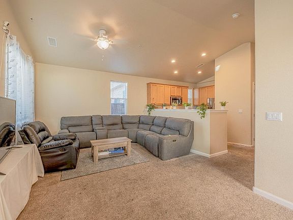 This charming 3-bedroom, 2-bathroom home is move-in ready and offers a smart, spacious layout. The main bedroom features its own full bathroom and a closet for added convenience. The well-designed floorplan maximizes square footage where it counts, providing comfort and functionality. The large kitchen is equipped with granite countertops, walnut-stained cabinetry, and a four-burner gas range, and it seamlessly connects to the open dining and living room combo, perfect for entertaining. The finished 2-car garage offers additional storage space. Solar panels owned included. Located just blocks away from restaurants, schools, and parks, this home is in a prime location for easy access to all amenities. Don't miss out schedule a viewing today before it's gone!