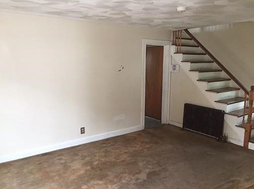 Brick-faced colonial style two story home situated on a quiet street with off street parking and partially fenced. The interior features 3 bedrooms, one full bathroom, living room w. fireplace and separate dining room. Kitchen appears to have newer cabinets and countertops. Bring your gloves and bring this one back to life! Buyer to complete any/all due diligence. Room sizes are approximate.