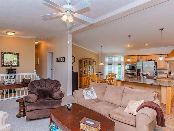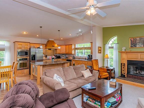 Beautiful 9 year old ranch on 1.9 acres featuring open concept, 3 bedrooms, 2.5 baths, livingroom w/fire place, eat in kitchen w/center counter and SS appliances, dining area,master suite w/large bath, laundry on 1st floor, finished basement has family room w/bar, workshop and 3rd room(could be 4th Bedoom) , front and back porches and deck. Beautiful grounds with with walking trails, 2 out buildings and 2 car garage under house. Even has invisable dog fence.