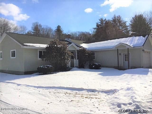 This ranch home features a large great room (26x 26) with knotty pine, vaulted ceiling, lots of windows,sky lights & recessed lighting. Nice kitchen w/ a ceramic tile floor & dining area. The living room has a wood stove & hardwood floor. There is also 2 bedrooms, the full bath & laundry area on the main floor. Downstairs you will find a family room area, 2 smaller rooms & a bathroom. Outside you will find the above ground pool & storage buildings. The great room & garage are set up for radiant heat (the tubing is in place but the the radiant heating system has not been hooked up). The home was built in 1986 and the great room and garage (24x26) was added in 2007. In the Great room the floor is unfinished & some trim work is needed.
