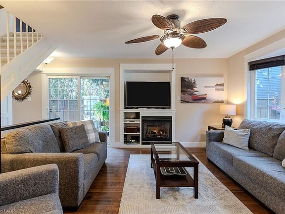 Modern kitchenExtensive cabinetryGranite countertopsStainless steel appliancesEnclosed gazeboGas fireplaceContinuous deck