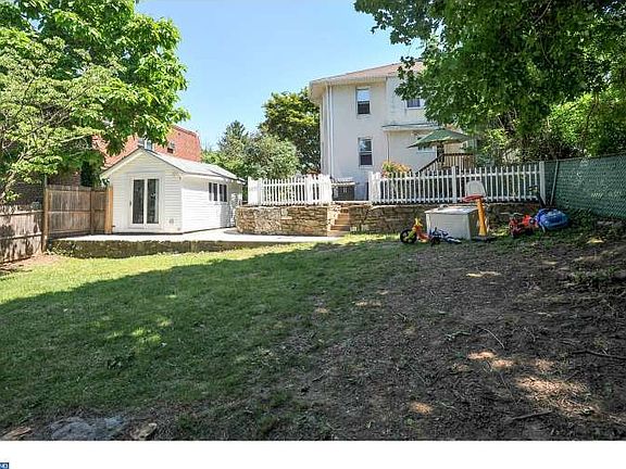 Beautiful spacious twin in highly desirable Rockledge. Enter this inviting home through a large sun-filled enclosed porch. Completely updated, the home features 9ft ceilings, finished hardwood floors throughout, custom moldings, and large windows giving the home a bright airy feel. The custom kitchen has an open floor plan which was recently updated from top to bottom with stainless appliances, and maple cabinets with self closing hinges. On the second floor you will find 3 large bedrooms, each with ceilings fans and plenty of closet space, along with a fully renovated modern hall bath. The walk-up attic give you plenty of storage space, along with an attic fan to help cool the house and lower your utility bills. In the finished basement you will find a full sized professionally built bar, sitting area, and new half bath! The exterior of the home has a 2 year old custom built office so you can work from home! Exit through rear doors to find a huge landscaped yard, large shed, and 6ft privacy fence sitting below a new stamped concrete patio offering plenty of space for outdoor gatherings. Central air, side driveway, and much more! Walking distance to trains, buses, and shops. This home is a must see!
