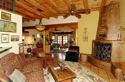 Seller will pay $2000 of buyers closing costs & a one year home warranty. Exterior Views & Curb appeal draws you into this FROST custom built adobe style, single level home. If you are looking for a perfect home to move into now (2160 Sq Ft), one that has been lovingly cared for by the original owners..... Look no further. Vigas, Nichos & Open living with multiple spaces for entertaining family & friends, lounging by the Kiva fireplace, or nestled into a quiet space with a book. Separate dining room, large laundry room. Large french doors from the sunroom open to an outdoor retreat featuring a waterfall, shaded pergola, landscaped grounds and stone features. Patio wraps the entire back of this well designed home. Large master suite, with his/her closets and built ins. En suite tiled bath & dressing area. Home features large passages and a clever / built in office space. Radiant floor heating, custom cabinetry throughout. Saltillo tile, wood and stained concrete floors. Immaculate condition throughout. Fabulous jumbo size walk in kitchen pantry with wall mounts for all of your cooking pots & utensils! No more bending. Work out room / gym designed by owners & items are negotiable. Garage has built in cabinets and work space.