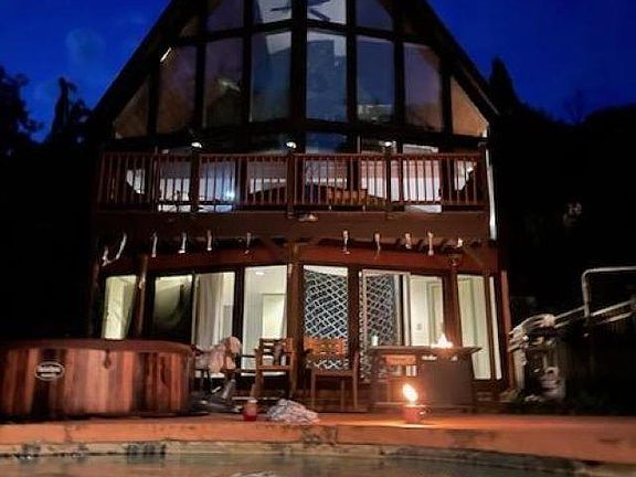 This stunning three-bedroom 3 full bathroom A-frame sits amid the trees on a private 9 acres in a perfect Location. Just 30 min from the Seacoast, 5 minutes to Milton Three Ponds and a short drive to the lakes region. Peaceful living in this open floor plan with cathedral hardwood ceilings; a wall of windows let you take in the light and the beautiful scenery. The covered farmers porch is inviting. As you walk in your home the laundry area/mudroom is extra spacious. Nice sized kitchen with a unique gas range and stainless-steel appliances.  There is a separate dining room off the kitchen/living area. The stone center fireplace is sure to catch your eye and is amazing on those cold nights. The living room has cathedral ceilings and floor to ceiling windows, take in the epic views of your beautiful backyard and gunite inground pool. There is a bedroom and attached private full bathroom on the first floor. Upstairs, there is a loft, a guest bedroom and ¾ bath. The lowest level provides an amazing private retreat. Huge primary bedroom, full bath, and walk out onto the pool. There are So many more amazing features including a metal roof, including on the 2 car garage with a bonus room above it. Irrigation. Alarm System. Mini split AC and built in AC in each bedroom. Pellet stove. 1st floor has radiant heat floors. Fully fenced around the pool. Subdivision possibility. Showings start at the Open House Sat 6/10 and Sun 6/11 from 10am - Noon both days.