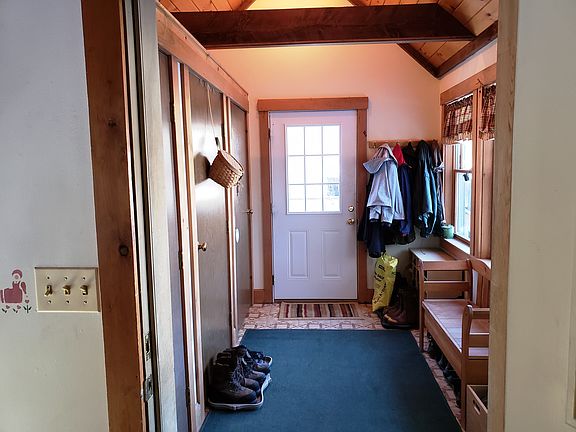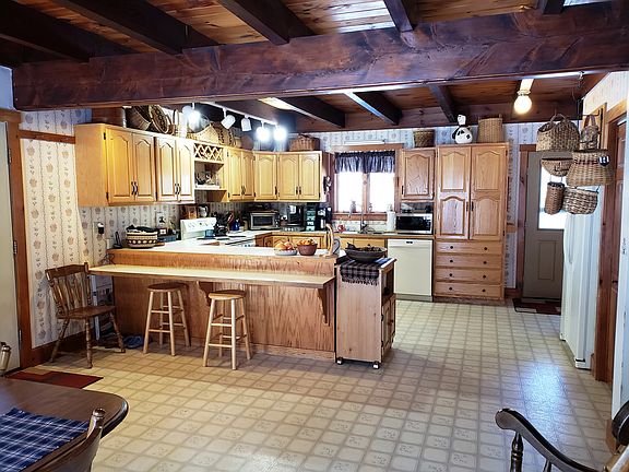 Spectacular Chalet offers a large wooded private lot. Lots of vehicle/toy storage with oversized 2 car garage and a carport and 2 car lean to! Located a short walk to lake, snowmobile trails! Has a beautiful yard with a front farmers porch and large rear deck! Inside has a large mudroom with plenty of storage! Open concept kitchen dining room area, livingroom w/cathedral ceiling gorgeous exposed beams and skylights make it so charming and light! The warmth of the pellet stove and built in shelves add to the appeal of this home! Has 4 bedrooms or 3 and an office. 2 full baths! Separate laundry room on 1st floor with a laundry shoot from second floor! Large Master bedroom with walk in closet! Central Vac, newer roof and furnace! This is it everything you want and more!!!