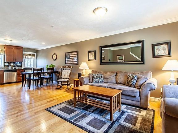 Welcome home to this absolutely pristine and turn key end unit at Squannacook Hill! This town home features gleaming hardwood floors & double crown moldings in the open concept kitchen, living, & dining areas. The upgraded kitchen has granite counter tops, stainless steel appliances, ceramic tile back splash, & cabinetry with a cherry finish. On this same level you will find access to the rear deck and a 1/2 bath with ceramic tile flooring & pedestal sink. The second floor boasts a master bedroom with a vaulted ceiling, bedroom #2, and a separate loft area often used as a 3rd bedroom, home office, or exercise room. You will not want to miss the updated full bath with cherry vanity, granite counter top, ceramic tile flooring, and subway wall tile surround above the shower! Plenty of storage for your vehicle and more in the one car garage, mudroom, laundry room, and utility room. This exceptional unit is ready for immediate occupancy and offers tremendous value in historic Groton!
