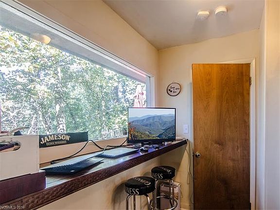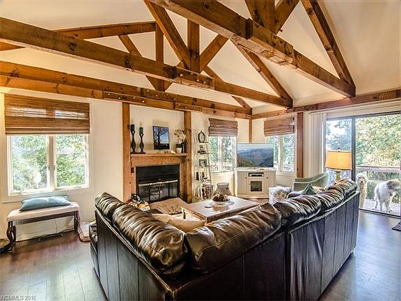 Gorgeous view over Lake Julian and Pisgah! This cute bungalow is nestled among trees with a nice sized .57 acre lot. Wood floors, master on main, large deck to enjoy the sunset, fireplace in great room, storage work shop in basement and fantastic rental history!
