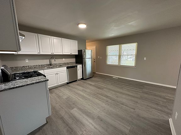 Updated 3 bed 1 bath ranch. Vinyl plank flooring has been added throughout the main living space. The kitchen has brand new white cabinetry as well as stainless steel appliances. The bathroom has been refreshed and new paint in the home. The backyard is fully fenced with a large covered concrete patio. There is a 1 car attached garage as well as additional space to park with a concrete driveway and gravel drive next to it. We do not advertise our listings on Facebook.