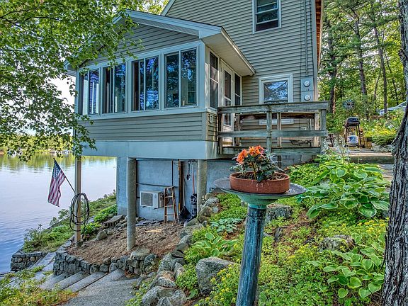 Broad Bay Waterfront on Ossipee Lake! This charming lakefront home is situated on .793 acres with 140 ft. of private waterfrontage. Quick access to the channel leading to the "Big Lake" plus gorgeous SUNSETS. Much care went into the landscaping with many perennials & well-constructed stone walls & granite steps. Enclosed porch with heater ceiling fan for relaxation looking out to the lake. Home comes furnished. Cozy living room with fireplace open to eat-in kitchen, large primary 1st floor bedroom, all with awesome VIEWS. Kitchen custom cabinetry is well planned for storage, along with a dining island to gather around while entertaining. First floor 3/4 bath & separate laundry area. Entire 2nd level is open to utilize as a HUGE bunk room with possible division into an additional bedroom or office. Full daylight basement, with double entry door giving direct access to the waterfront. Unfinished, but could be for a family or exercise room. Mini splits for A/C & heat, along with an FHA furnace. State approved septic system, drilled well. Additional MLS #4925558 can be purchased to add to this special offering with added water frontage. Combined listing MLS #4920018. Please no drive-bys, view by appt. only.