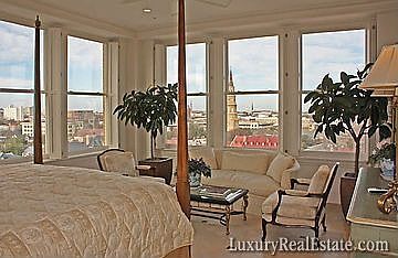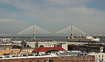 This beautifully re-designed luxury flat is located on the 7th floor of the People's Building, Charleston's first skyscraper. The incredible panoramic views encompass the Arthur Ravenel Bridge, the French Quarter, the Cooper and Ashley Rivers, the Harbor, the Peninsula and Beyond. This chic, sophisticated unit includes elegant upfitting of the elevator, the paneled hallway, and a one of a kind floor plan by Miles Glick. This custom unit has beautifully built cabinetry throughout with an open floorplan and dramatic entry taking full advantage of the incredible views. Marble floors throughout including beautifully designed master and guest baths. These views are unique to this property since no other current or future buildings can be built to this height on the Peninsular Charleston. Enjoy the views of Regattas, the Christmas Boat Parade, visiting Tall Ships, Cruise Ships, Sunrises, and Sunsets. This stunning turn key property offers incredible security with private code floor access and 2 parking spaces. Perfectly located in the art haven of the French Quarter within walking distance of the best shopping and dining. Secure and exceptionally private.