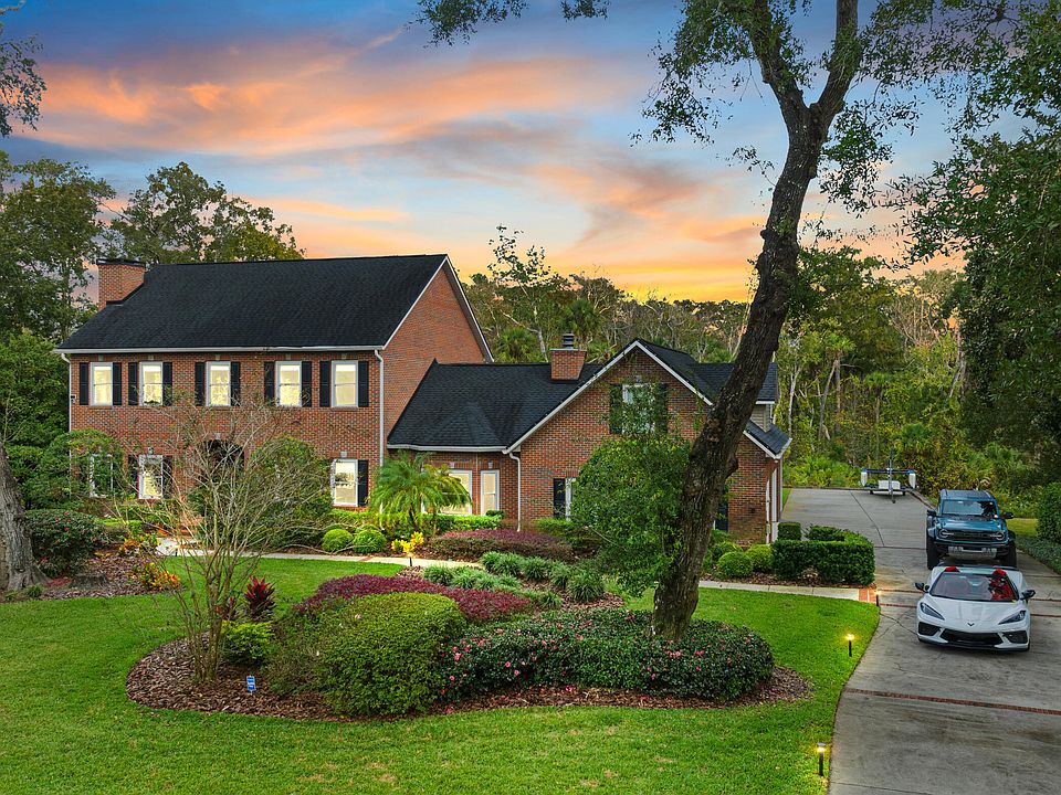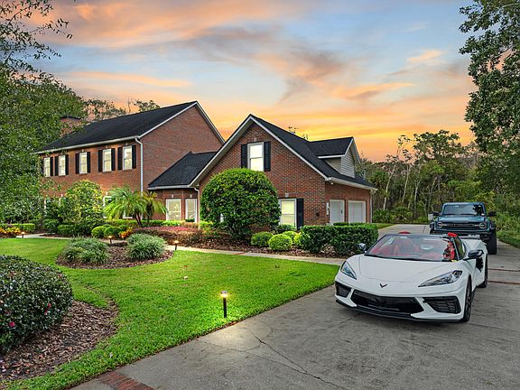 Welcome to your dream waterfront retreat in the prestigious Broadwater community, where luxury meets tranquility on over 2.5 acres of pristine land with 115 feet of frontage on the picturesque Tomoka River. This traditional estate boasts 4 bedrooms and 3.5 baths, with the 4th bedroom currently transformed into a home theater equipped with Sonos technology, a wet bar, and a private bathroom for the ultimate entertainment experience. With over 3500 sq ft of meticulously designed living space, every detail has been carefully considered to create a haven of comfort and sophistication. The heart of this home is the large chef's kitchen, a culinary enthusiast's delight. Adorned with top-of-the-line appliances, including a substantial side-by-side Sub-Zero refrigerator and wine chiller for 146.. bottles, a 60'' Wolf gas range and electric oven, Sub-Zero under counter refrigerator/freezer, and two farm sinks, the kitchen is a masterpiece of form and function. Soft drawer close custom cabinetry adds a touch of elegance, ensuring both style and convenience. The owner's suite is a sanctuary of luxury, featuring two walk-in closets, separate sinks, a walk-in shower, and a tub for unwinding in style. The formal dining room exudes a timeless charm with great natural light and a cozy fireplace, while the sunken living room, also boasting a fireplace, showcases shiplap wood and built-ins, creating an inviting atmosphere. Throughout the home, barn wood and brick accents add character and warmth. Step outside to the expansive travertine pool deck with two swim shelves, ideal for both children and leisurely lounging. A firepit beckons for cozy evenings under the stars. The extended driveway leads to a three-car garage, ensuring ample parking space. The meticulously manicured yard in the front and back creates a serene outdoor oasis. Venture towards the Tomoka River, and you'll discover a private 700-foot dock, a covered boat house with a remote boat lift, water, and electricity perfect for accommodating up to a 25-foot boat. This waterfront estate is not just a home; it's a lifestyle, offering the perfect blend of luxury, comfort, and natural beauty. Welcome to your waterfront haven in Broadwater.