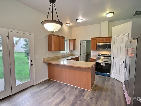 Extensive interior upgrades and updates! Bright and airy w/ high ceilings and windows that allow mountain-top views to the west. Brand new SS kitchen appliances, peninsula counter with a breakfast bar. Split bedroom floor plan, master bedroom with walk-in closet, en suite bath. New LVP (luxury vinyl plank) throughout and plush carpeted bedrooms. New interior paint. Install a tank and enjoy the propane fireplace on winter evenings. Spacious mud/utility room leads to the garage. New water heater & garbage disposal. Oversized 2 car garage, covered front entry porch, back patio off the dining room. HOA maintains roadways and common areas including the nearby park plus individual lawns and sprinklers surrounding the homes. This home has a spacious, level driveway for extra parking. Looking for a full-time residence, a Donnelly get-away or an investment? Excellent recreation access: Lake Cascade watersports, Skiing and Mtn Biking at Tamarack resort and so much more!