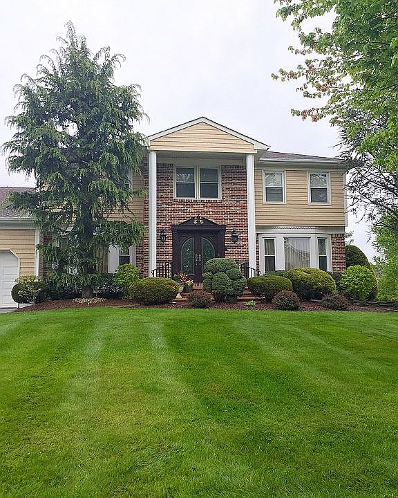 Beautifully updated 5b/2.5b full brick front center hall colonial with new paved walkway leading to stunning entry doors. Ceramic tiled entry leading to the Custom Kitchen featuring cherry wood cabinets, granite counter tops and stainless steel appliances. Family Room w/ gas fireplace and built in surround sound. Hardwood flooring throughout the family room, formal dining room, and formal living room, All bedrooms are spacious with sizeable closet space. Expansive Master Suite features hardwood flooring, master walk in closet, master bathroom completely renovated including large shower w/4 body jets, frameless shower door, dual sink vanity and tiled floor and ceiling. Full Basement partially finished with W/W/carpet. Lots of space! Beautiful private yard with large deck constructed with EON decking material. Newer Timberland lifetime roof, newer 2 zone heat and air. Excellent schools, close to shopping, transportation and houses of worship.