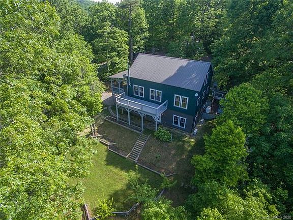 Private cabin in the woods with long range views and 3.18 acres of gently sloping land. Cozy living space with open kitchen with breakfast bar and wood stove. Extremely efficient with lots of natural light from south facing windows with long range mountain views. Master on the main with walk in closet. Brand new mini split heat and air unit on the main floor and upper floor and radiant floor heating in lower floor. Upper floor has a loft space, one bedroom and another bonus room that could be used as a bedroom. Main floor has living and dining space, kitchen, master bedroom and laundry. Lower floor has third bedroom and full bath plus large second living room and workshop space. Outside you have a large side covered porch connected to rear deck facing the mountain view and terraced yard is partially fenced in and has garden space, yard space, a large outbuilding with chicken coop and fire ring. Would make a great vacation rental or full time residence. Additional building site.