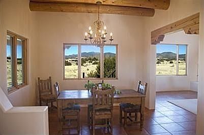 Exceptional and elegant open floor plan built in 2001 by well known and respected Tierra de Zia. This home boasts a lovely Owners Suite with fireplace and access to a covered portal with grand views to the greenbelt and mountains. Large well appointed kitchen with granite counters. Popular split floor plan with three additional bedrooms. Entering through the gated courtyard into the home, you will be wowed by the large picture window with enchanting views of the Sangre de Cristo Mts.