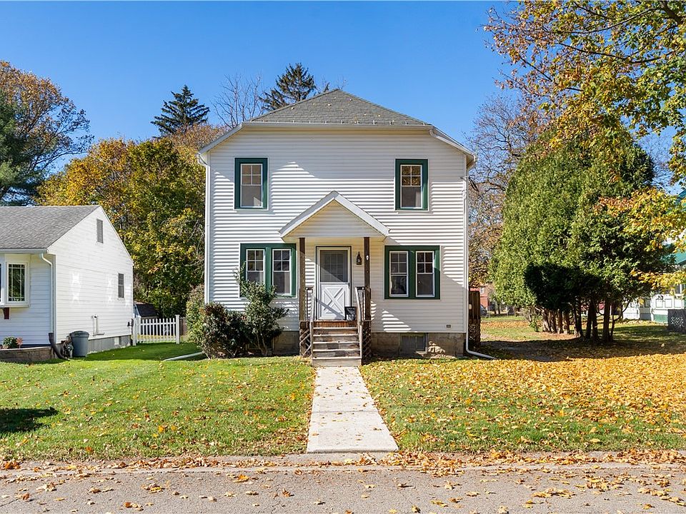 Located on a quiet, desirable dead-end street, this beautifully updated 3-bedroom, 1-bath home offers a perfect blend of comfort and style. Step into the spacious main floor, where you'll find a bright and airy eat-in kitchen featuring sleek stainless-steel appliances, stunning granite countertops, and plenty of storage space—ideal for both cooking and entertaining. The living room, recently updated with new sheet rock, is filled with natural light and features a charming decorative fireplace that adds a cozy touch to the space. Upstairs, you'll discover three bedrooms, with the third being a great for an office, nursery, or a flexible guest room. The full bathroom has been updated with washer/dryer hookups. This home is move-in ready, with fresh paint and brand-new flooring throughout, making it feel like new. Additional updates include a new sidewalk, vinyl replacement windows, a new hot water tank, and a furnace that was replaced in 2017. Outside, the spacious backyard is perfect for entertaining, relaxing, or letting pets run free. With its modern finishes, thoughtful updates, and spacious yard, this home offers a truly inviting place to call your own.