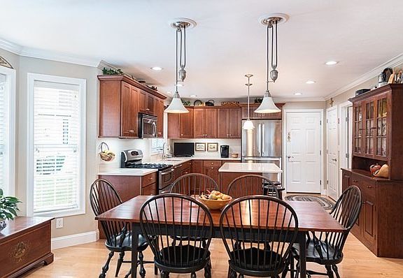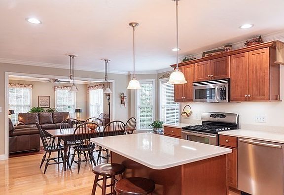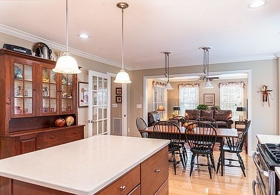 - Features: Flooring - Hardwood, Window(s) - Picture, Dining Area, Countertops - Stone/Granite/Solid, Countertops - Upgraded, Kitchen Island, Cabinets - Upgraded, Exterior Access, Open Floorplan, Recessed Lighting, Stainless Steel Appliances, Gas Stove, Lighting - Pendant, Crown Molding