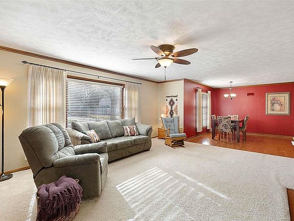 If you are looking for a brick ranch in an established neighborhood with a basement, extra-large fenced yard and lots of space, stop here! Upstairs you'll find 3 bedrooms and 2 baths. A large kitchen with space for eating in includes all appliances or choose to dine in the large formal dining room. The living room and dining room are open to each other and spacious with a fireplace in the living room. A separate study or morning coffee room just off the dining and kitchen area provide great work at home or craft space. Large windows throughout bring in tons of light in this traditional rancher. Downstairs, enjoy a family room with a fireplace and possible 4 th non-conforming bedroom. Laundry is conveniently located on the main level between the oversize 2 car garage and kitchen. Built in storage throughout both upstairs and downstairs keep the house tidy. Outside you'll appreciate the covered deck and very large fenced backyard with underground sprinkling system. 50 year architectural shingles 2009.