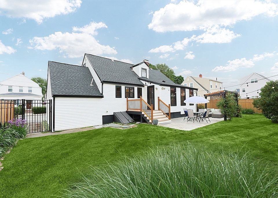 Expanded Cape, where every detail exudes sophistication. Rich hardwood floors & original exposed brick set a warm, refined tone throughout. The main level offers a gracious living room w/ fireplace, flowing seamlessly into a chef’s kitchen appointed w/ a butcher block island, quartz countertops, open shelving & vintage-inspired pendant lighting. The sun-drenched dining area opens to a serene, fenced backyard complete w/ a private patio & a pergola—perfect for relaxing or entertaining. The first-floor primary suite is a tranquil retreat, featuring a custom walk-in closet that includes a washer/dryer & a luxurious spa bath w/ a glass shower & freestanding soaking tub. Upstairs, two spacious bedrooms share a full bath. The finished lower level offers versatile space ideal for a home gym, office, or playroom, plus storage. Just minutes to top-rated schools, I-93, Medford Square, Tufts University, Assembly Row & Boston.
