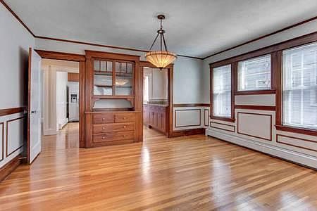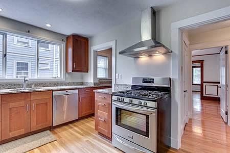 This listing is for a spacious 3 bedroom apartment located on the first floor of an Arts & Crafts style 2 family home, set on a tree lined street, overlooking a grassy delta, near the Oakley Country Club. Steps away from a T stop to Harvard Square and Boston, walking distance to shops, services and restaurants. Features: Living Room, Dining Room, 2 bedrooms, an office, One Full Bath, New Kitchen & Pantry All Hardwood Floors throughout New insulated windows Working fireplace Neutral freshly painted walls, no wallpaper Period fixtures & built in bookshelves and curio Spacious Closets Generous basement storage Gas hot water & heat, stove New, energy-efficient baseboard heating system Updated bisque colored bathroom, pedestal sink, tub Brand new kitchen, high-end stainless steel appliances, Dishwasher, Disposal, Range with convection oven, Fridge, hood, granite countertops. Brand New, No-coin, personal Maytag washer & dryer in the basement Front and rear open porches Professionally landscaped grounds Garden Off street parking for two cars
