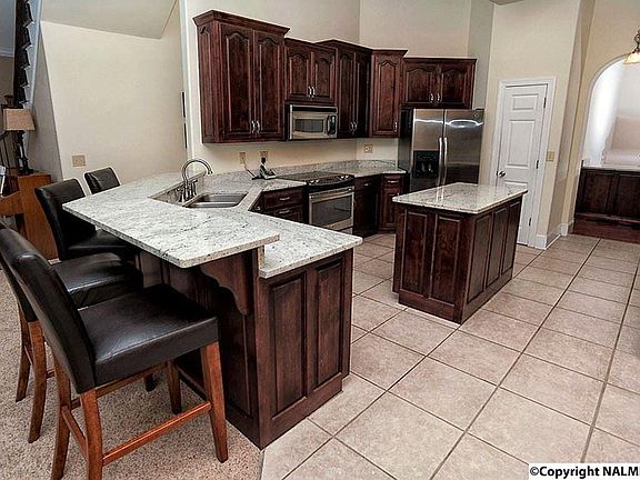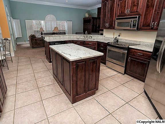 Gorgeous home situated on a large 0.90 acre treed lot! Minutes away from Huntsville and Redstone. Home features soaring ceilings and neutral tones throughout. Family room boasts 10'ceiling, a gas log fireplace, and built-in shelves! Kitchen overlooks the breakfast and Family room area. Gourmet kitchen features, stainless steel appliances, a pantry, kitchen island, and tiles. Isolated Master with a large sitting area a beautiful fireplace, glambath with double vanities, walk-in shower, and a relaxing jetted tub! HUGE bonus room upstairs is great for teen suite with a bath and shower! Entertain outdoors in the oversized den overlooking the huge treed lot. What are you waiting for? Call now!
