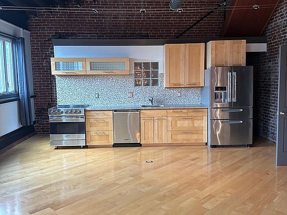 Very unique 2 story loft layout with exposed brick available May 1st. 2 bedroom 2 bath unit with bonus space/den. Unit comes with a private roof deck and private garage. 2 parking spaces are also included in onsite blacktop parking lot. Radiant heated floors included. Water, trash and sewer included. Tenant pays for gas/electric/cable/internet. No smoking and no pets. Great gym right next door. Water, trash and sewer is included. Private roofdeck and private garage attached to unit. 2 parking spaces included on paved on-site parking lot