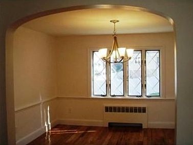 Pretty Cape Cod-style house on neighborhood street, conveniently near Woburn common. Significant renovations include: 200 amp electric service and new fixtures (2011), interior painting (2011), refinished [gleaming] wood floors and new front door (2011), bathroom and kitchen updates (2011), gas steam boiler (2010), gas water heater (2009), front walkway and granite steps (2009). Additionally, roof is only 4-5 years old. Double-hung windows are vinyl, tilt-in. Large sun porch off kitchen.