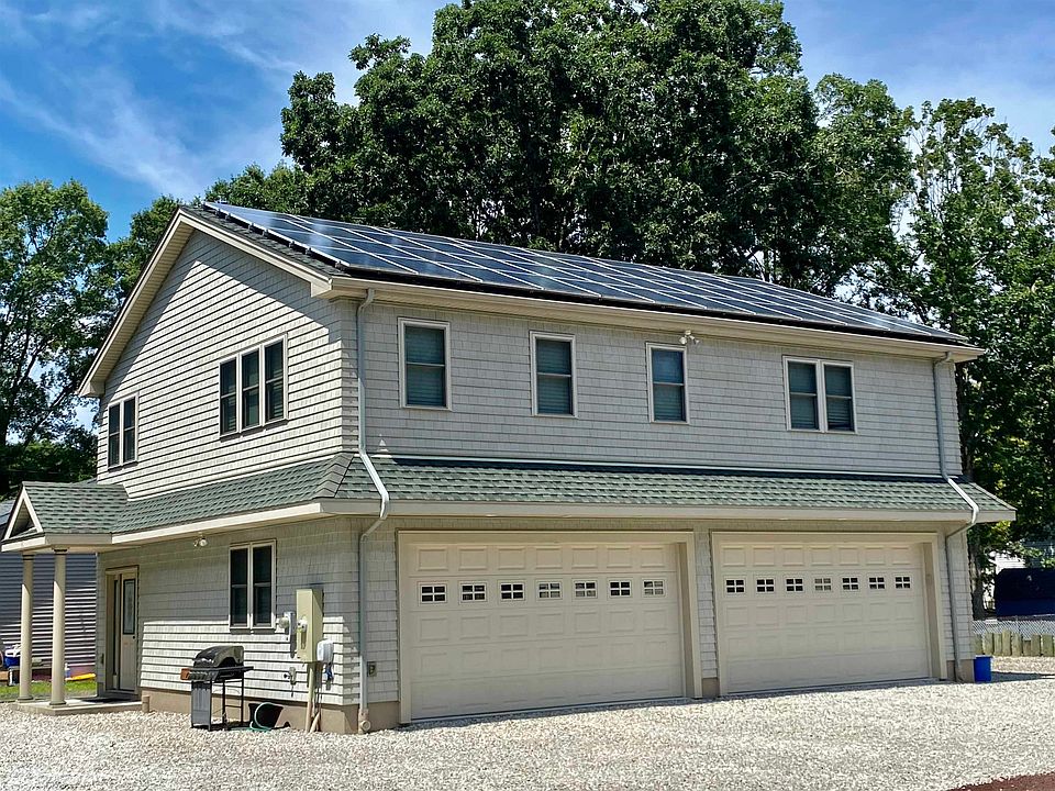 So Many Reasons to Buy this Well-Built Raised Rancher! Three Spacious Bedrooms with 1.5 Baths on second floor and a 4 Car Garage with Heated Floors. "Owner Owned" Solar Panels on the Roof that Generate most of the Electricity…Private Street with only 4 other homes plus Trees and Foliage across the street….Home has Hardwood floors thru-out second floor…Kitchen has beautiful cabinets...large attic for storage...Heating and Cooling System powered by Electric Heat Pump...Water Heater also Electric...Well Water with a Filtration and Softener System…Whole house is Insulated with Spray Foam keeping it Extra Warm...First Floor/Garage has Radiant Heat...Park 4 Cars and keep them in Great Condition with the Heated Floors or Rent the Garage and Earn Income…OR use the first floor for a Recreation area... Gym, Workshop, Storage or all 4 together. Lot size is 70 x 100 giving you plenty of Outdoor Space! This is a rare chance to own a Property that combines Style, Comfort, and Functionality with Low Maintenance. Don't miss this Opportunity!